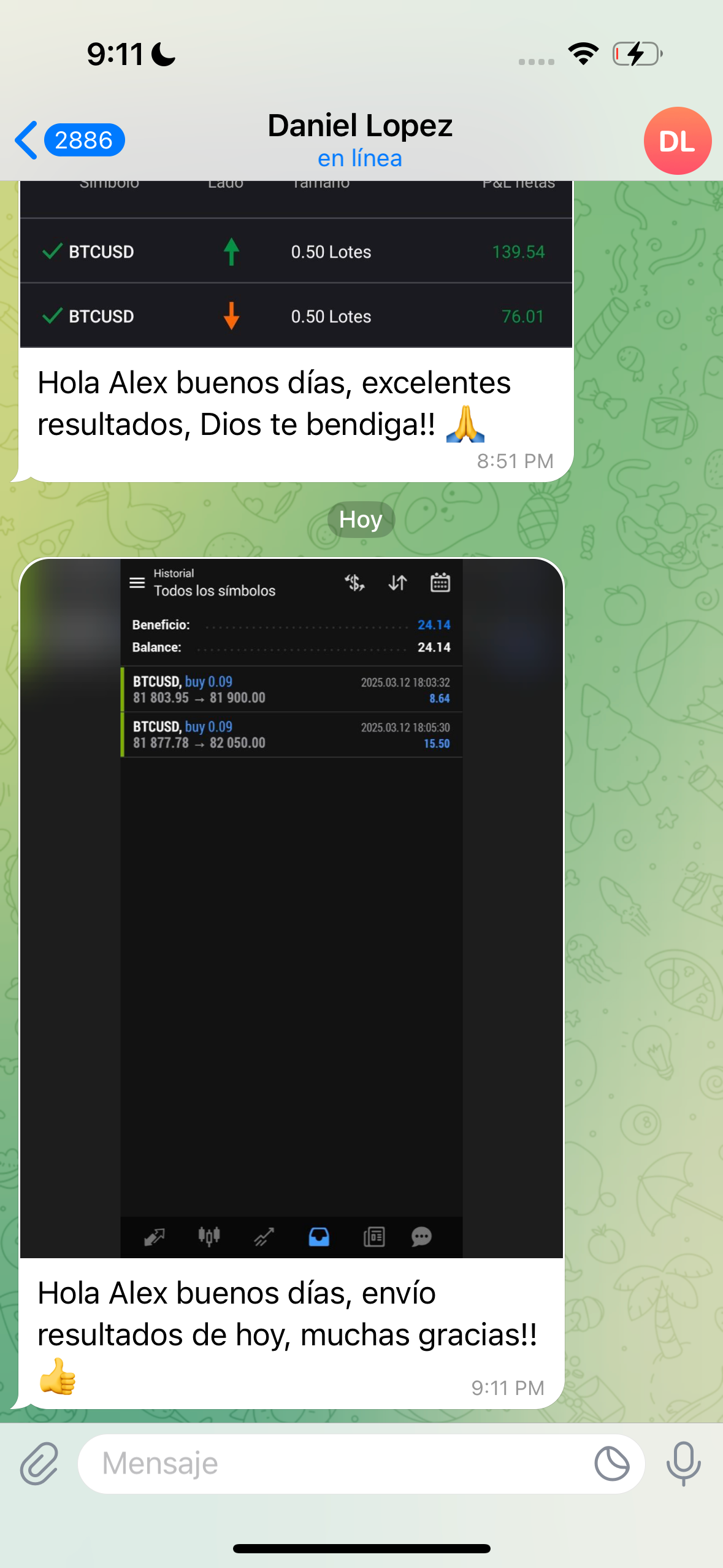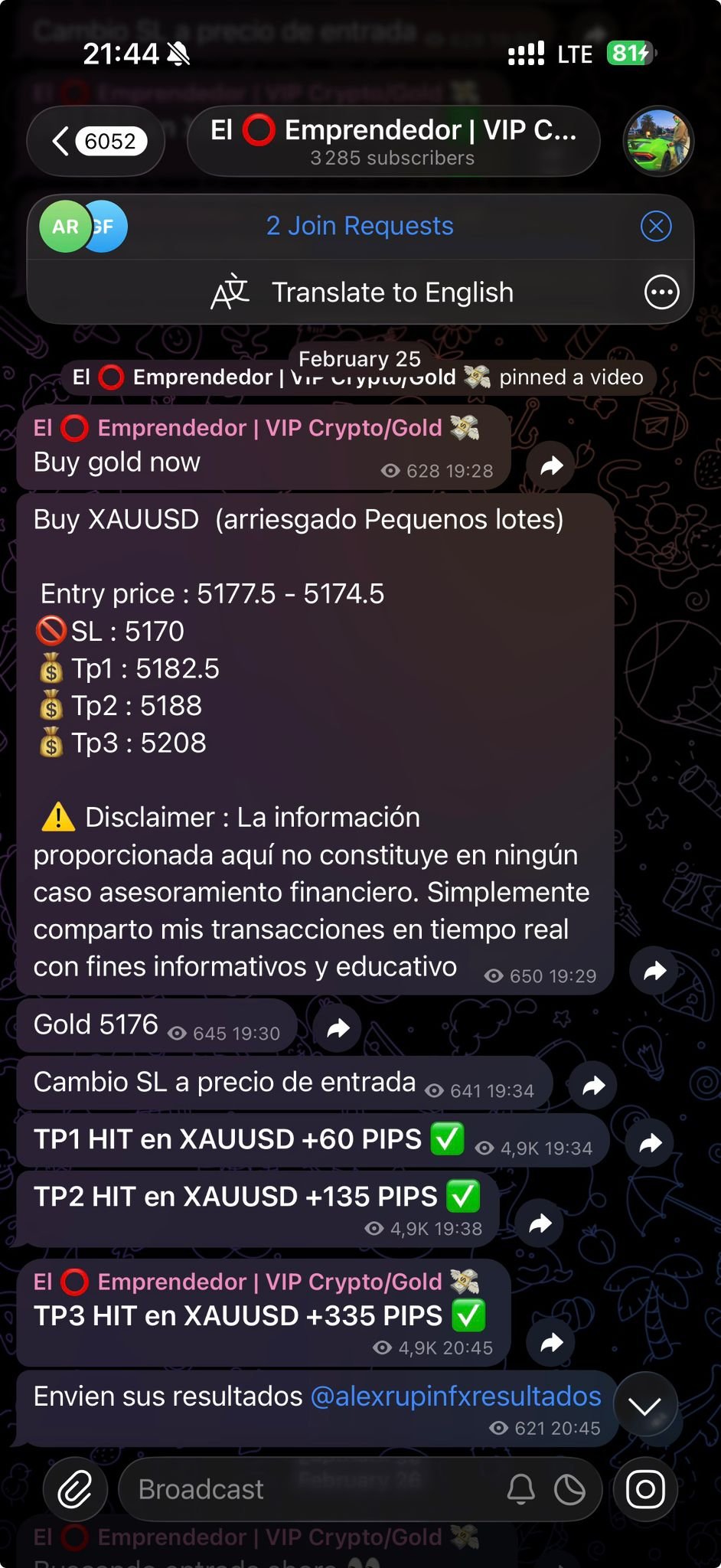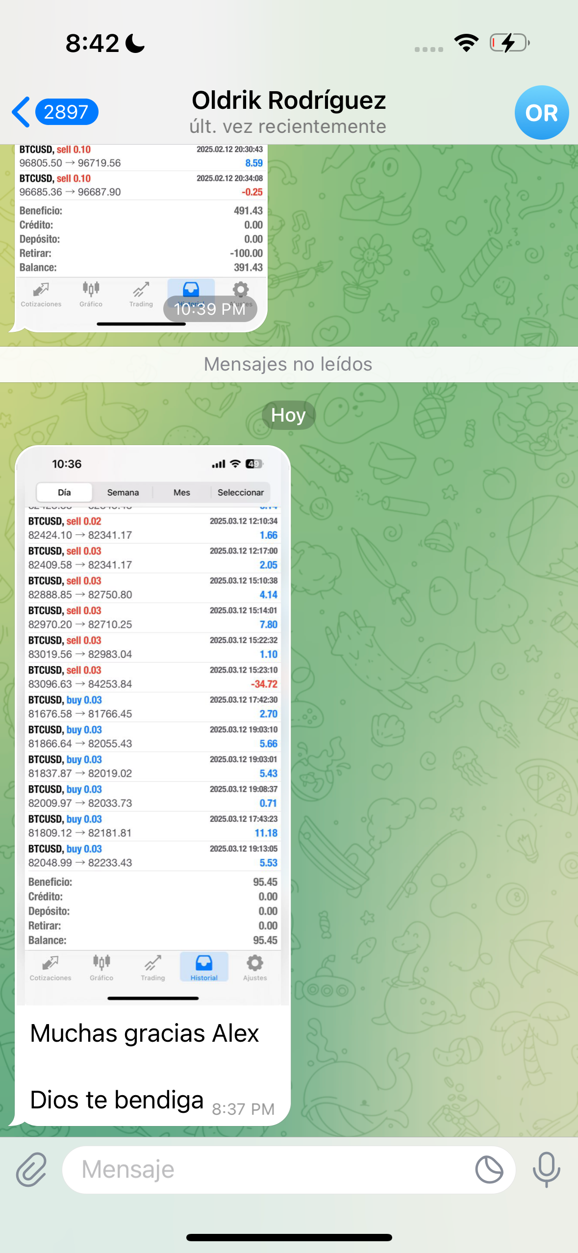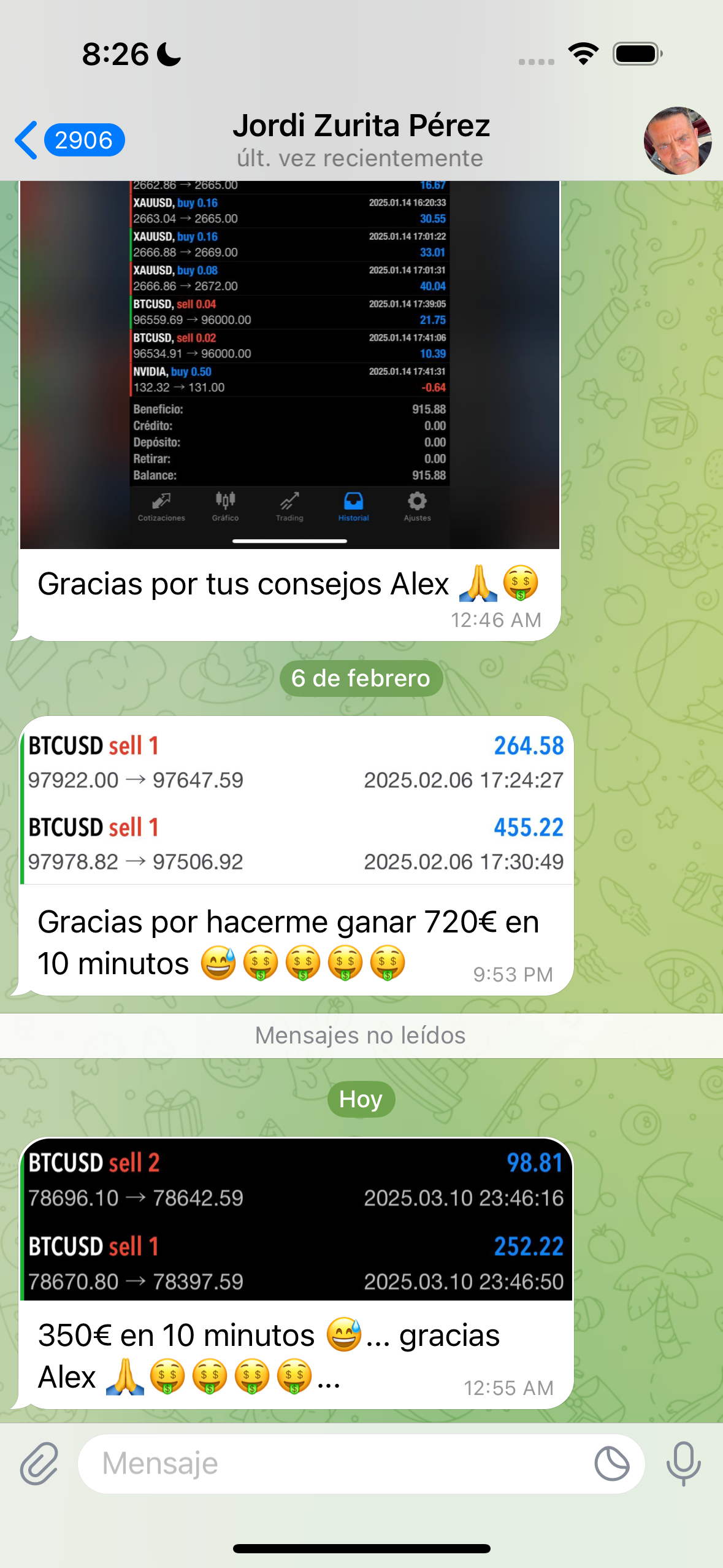 Por supuesto que no. De las operaciones que enviamos, algunas se pierden. Sin embargo, para ponerte un ejemplo, desde el 26/12/2024 al 09/03/2025 he enviado 72 señales, de las cuales 3 tocaron STOPLOSS (se perdieron) y 69 tocaron TAKEPROFIT (se ganaron), por lo que mi winrate actual es de 95,83% (esta información la puedes corroborar cuando te unas al grupo de señales gratuitas).
